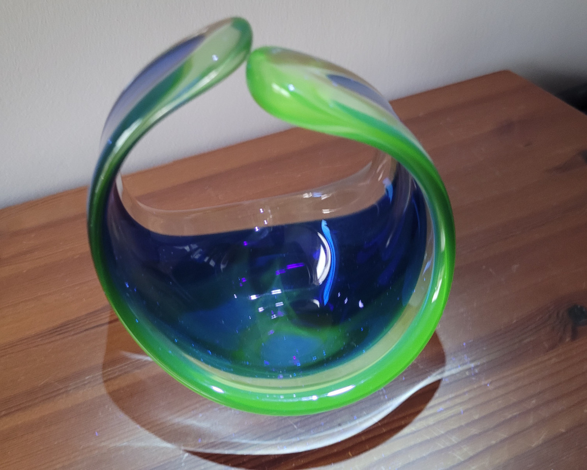 These freeform coloured glass bowls have always caught my eye in second hand shops. I saw one recently for £3.50. I've since learned it is a style of Murano glass and from the Italian island of Murano (hard to say for sure with each piece without a makers mark). The specific style I am drawn to is know as 'sommerso' meaning submerged in Italian. The name is due to the technique of layering glass of multiple colours which gives the impression of a colour 'submerged' underneath another.